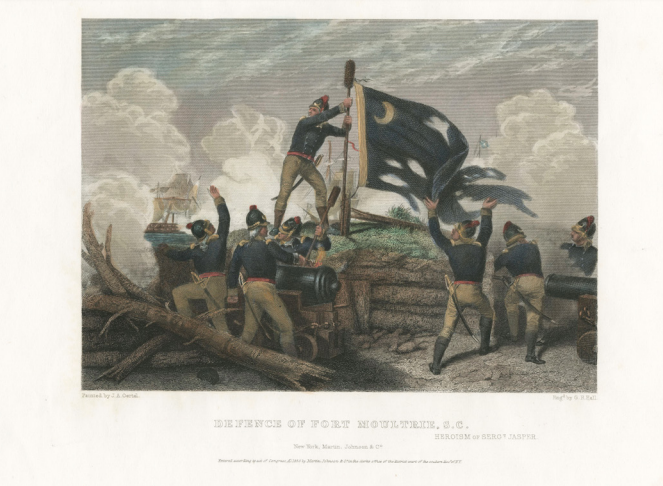 Defence of Fort Moultrie, the Heroism of Sergeant Jasper (courtesy of Martin, Johnson & Co).